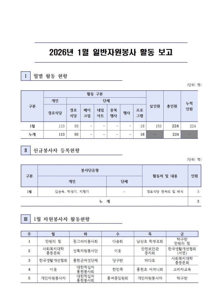 2026년 1월 일반자원봉사 현황보고