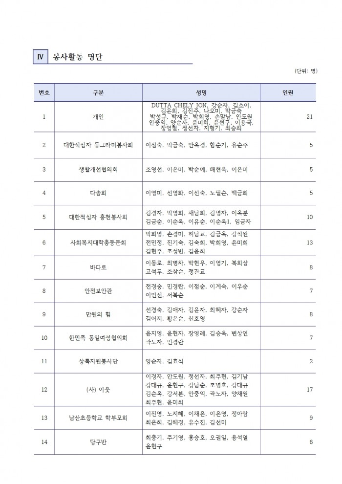 자원봉사 현황보고