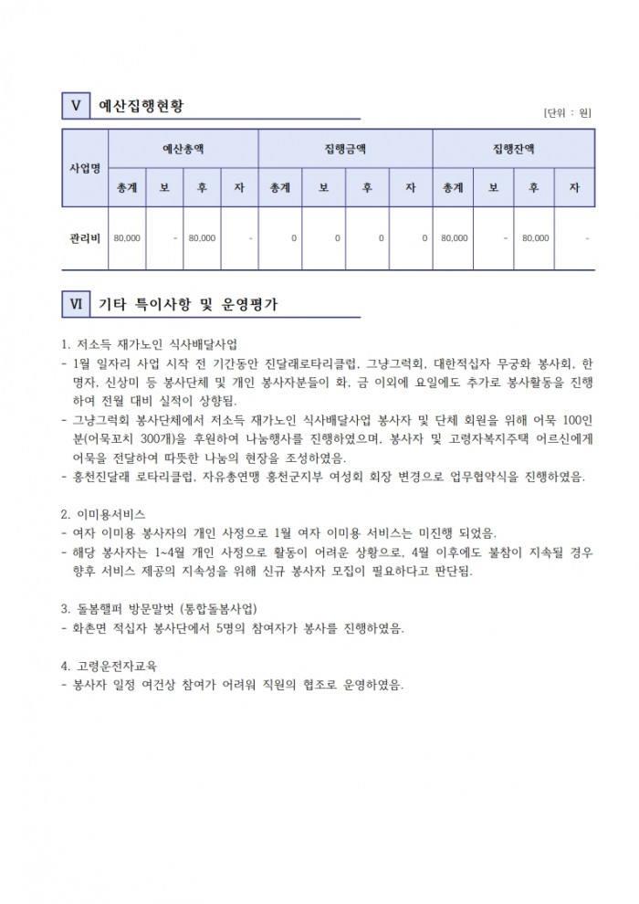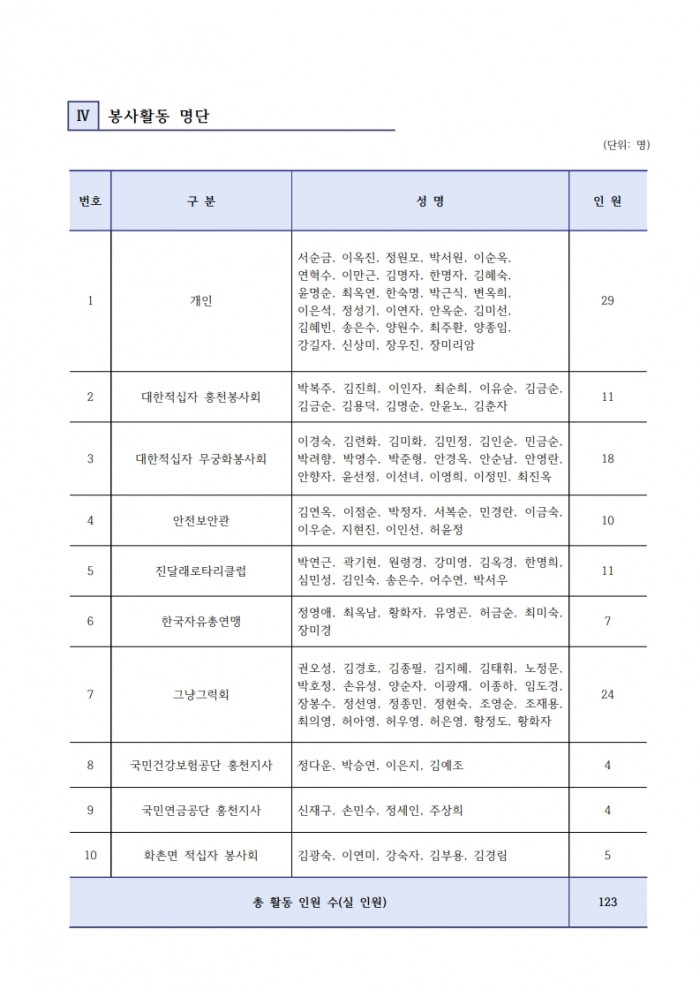 자원봉사 현황보고