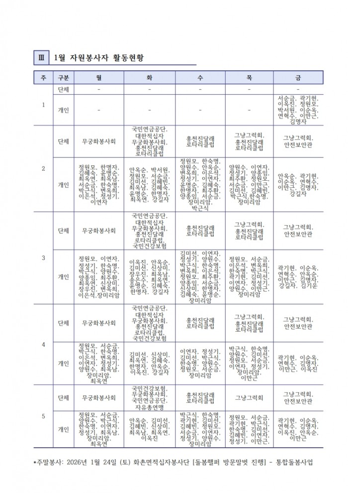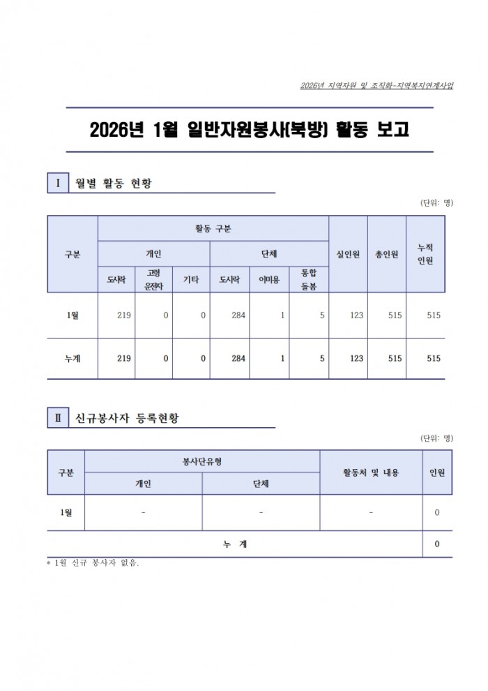 2026년 1월 일반자원봉사 현황보고