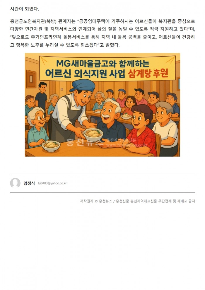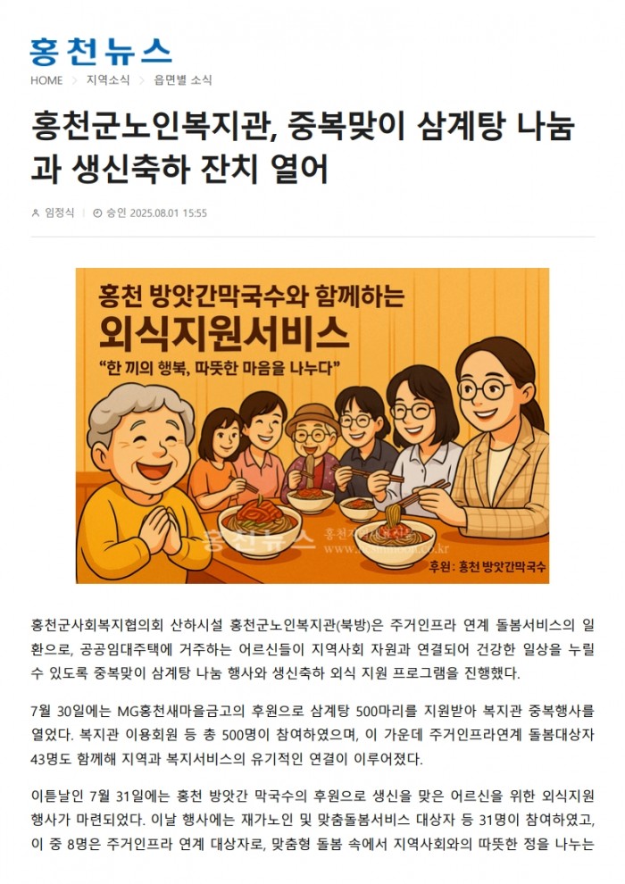 홍천뉴스_홍천군노인복지관, 중복맞이 삼계탕 나눔과 생신축하 잔치 열어(2025. 8. 1.)