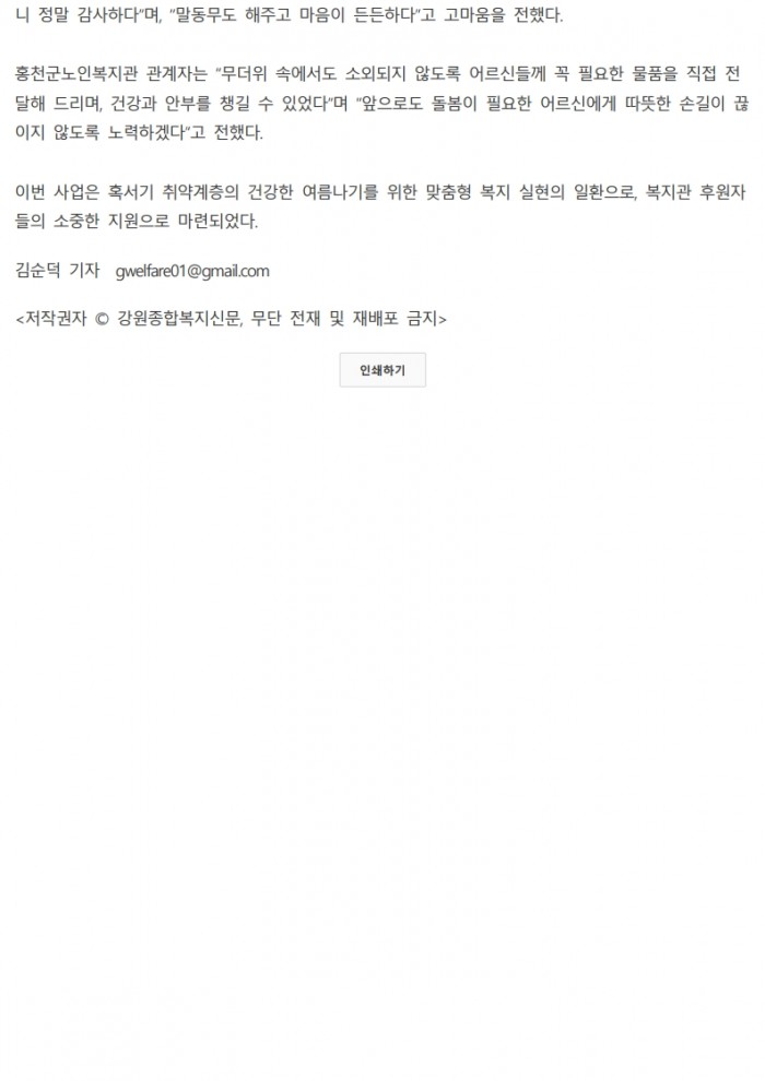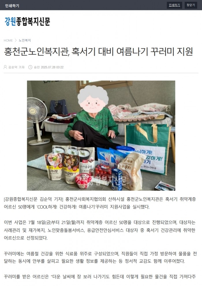 강원종합복지_홍천군노인복지관, 혹서기 대비 여름나기 꾸러미 지원(2025. 7. 28.)