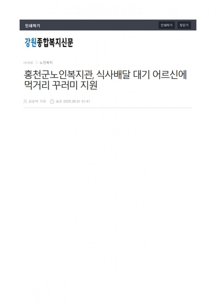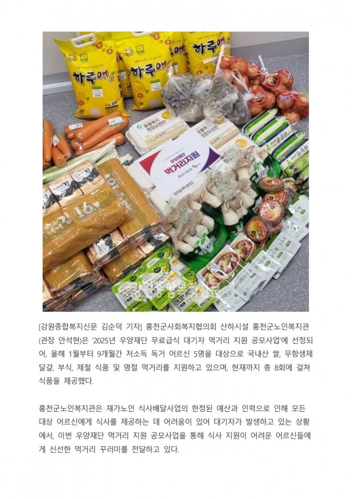강원종합복지_홍천군노인복지관, 식사배달 대기 어르신에 먹거리 꾸러미 지원(2025. 9. 1.)