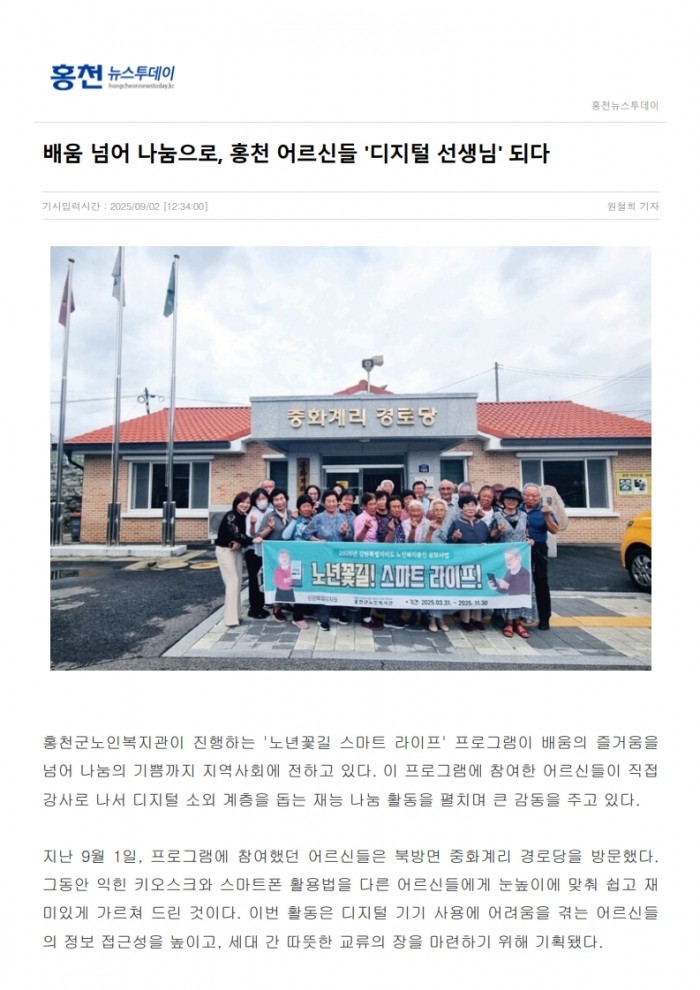 홍천뉴스투데이_배움 넘어 나눔으로, 홍천 어르신들 '디지털 선생님' 되다(2025. 9. 2.)
