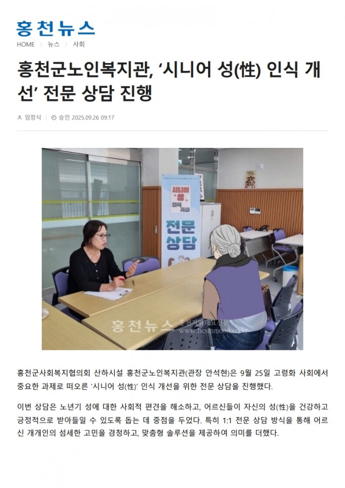 홍천뉴스_홍천군노인복지관, ‘시니어 성(性) 인식 개선’ 전문 상담 진행(2025. 9. 26.)