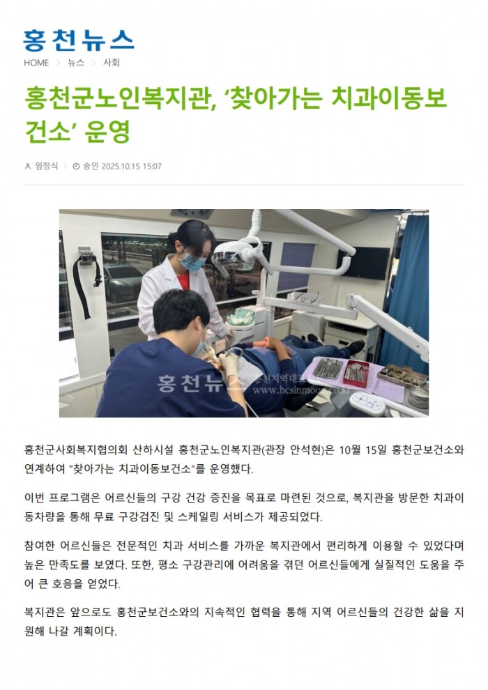 홍천뉴스_홍천군노인복지관, ‘찾아가는 치과이동보건소’ 운영(2025. 10. 15.)