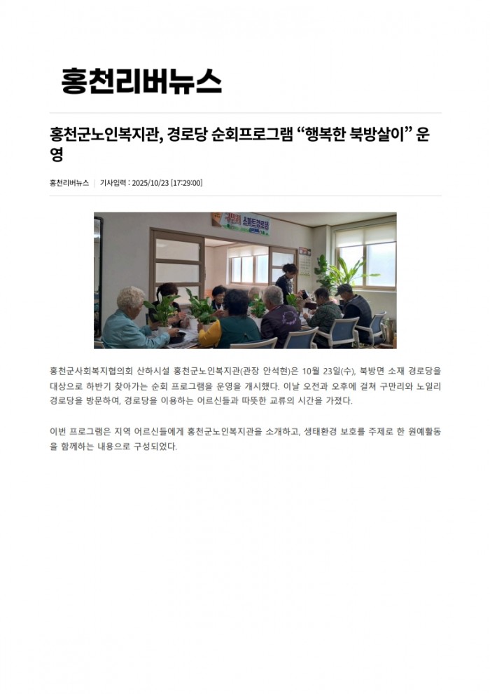 홍천리버뉴스_홍천군노인복지관, 경로당 순회프로그램 “행복한 북방살이” 운영(2025. 10. 23.)