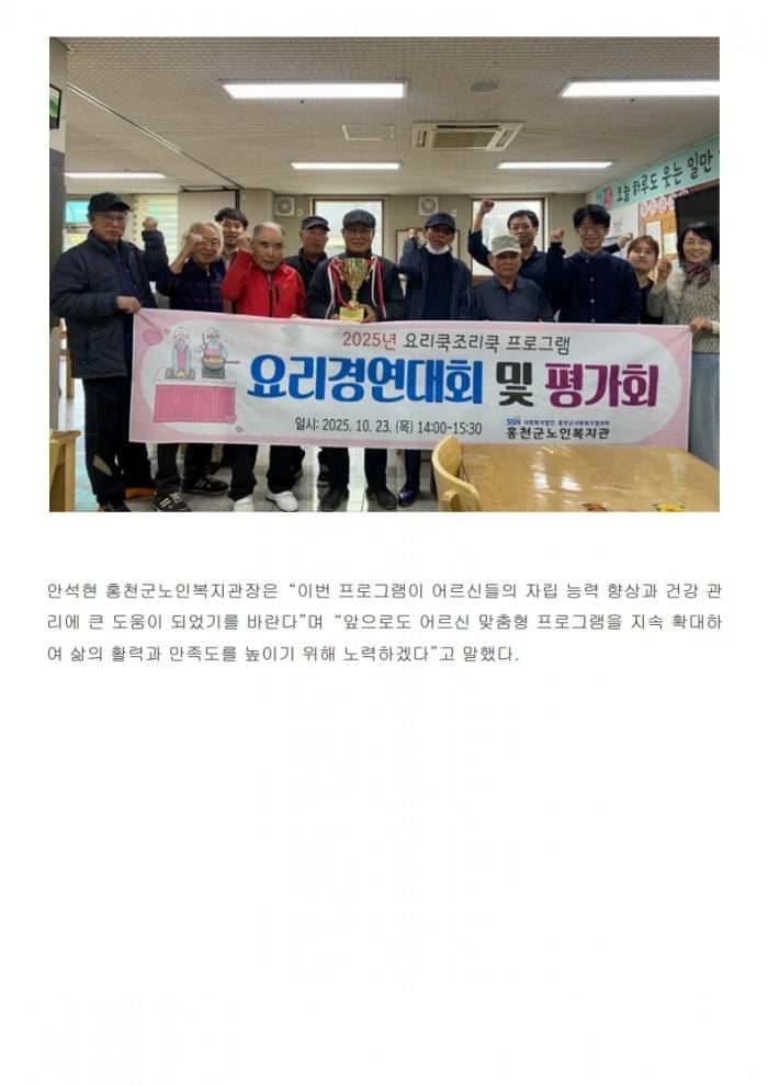 홍천뉴스투데이_홍천군노인복지관, ‘요리쿡조리쿡’ 요리경연대회 및 평가회 진행(2025. 10. 30.)