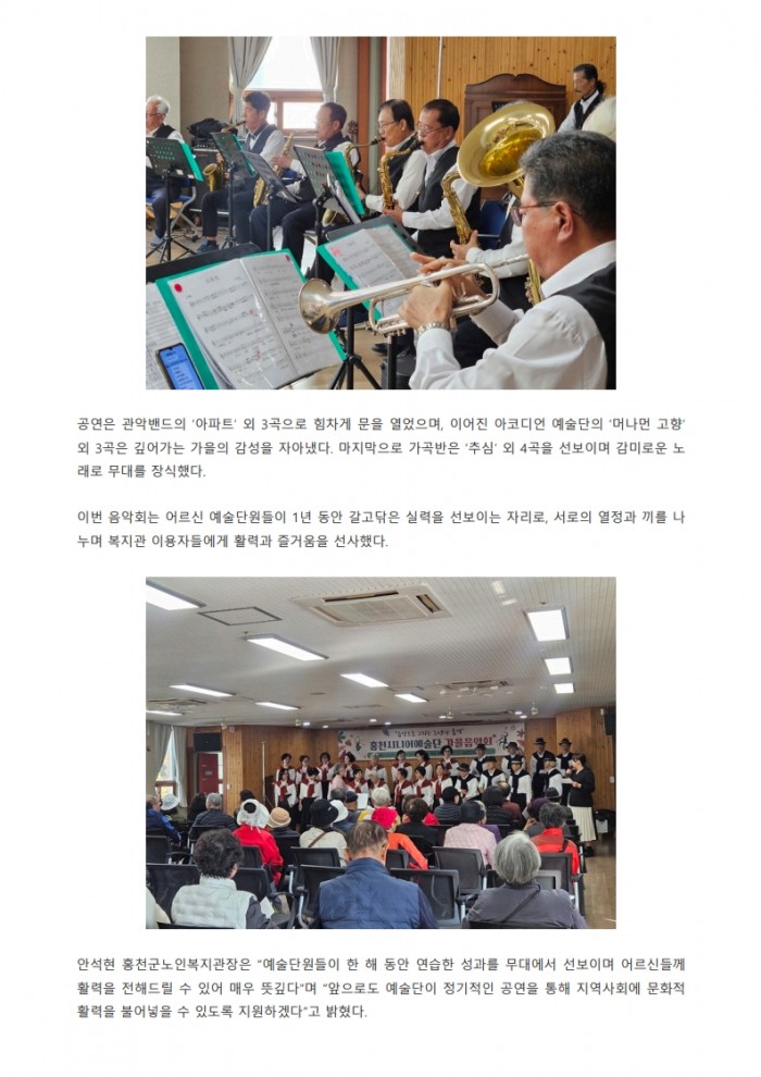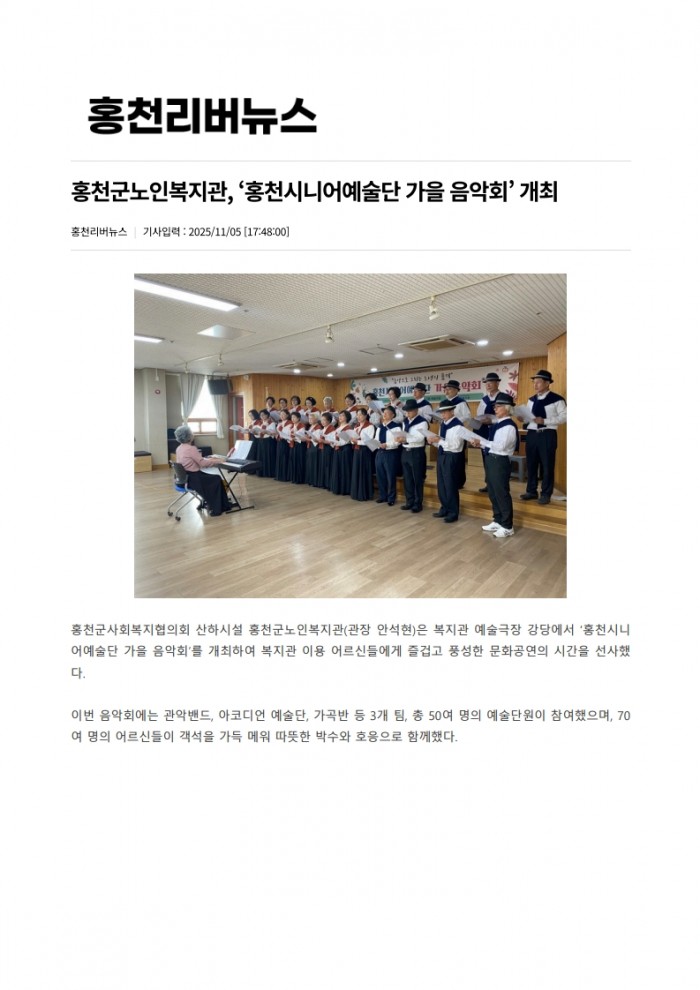 251105_리버뉴스_홍천군노인복지관, ‘홍천시니어예술단 가을 음악회’ 개최