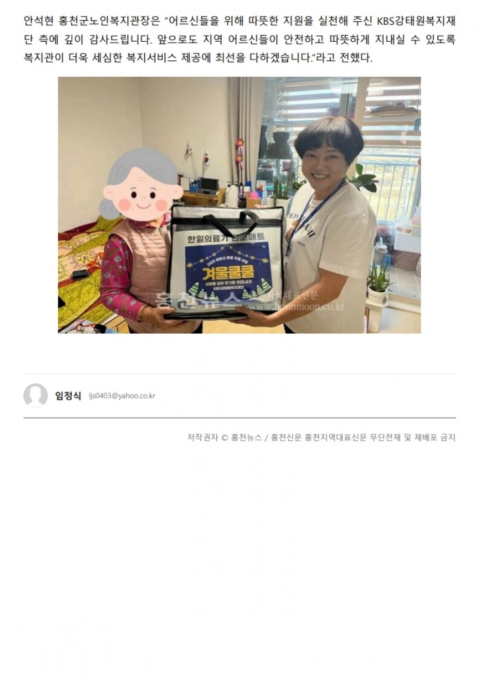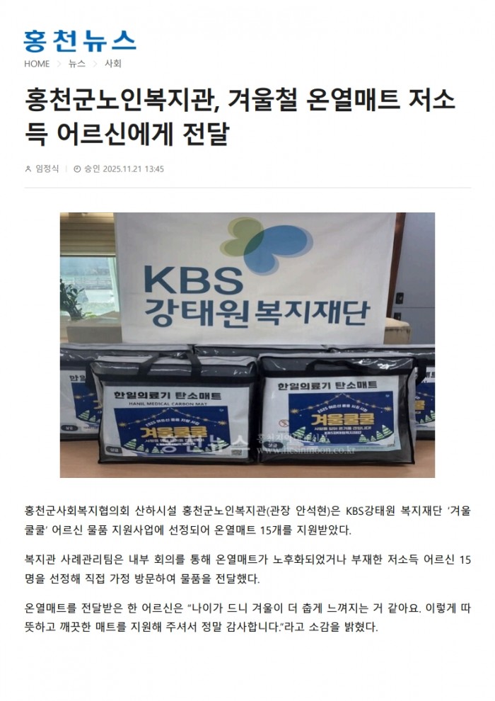 251121_홍천뉴스_홍천군노인복지관, 겨울철 온열매트 저소득 어르신에게 전달