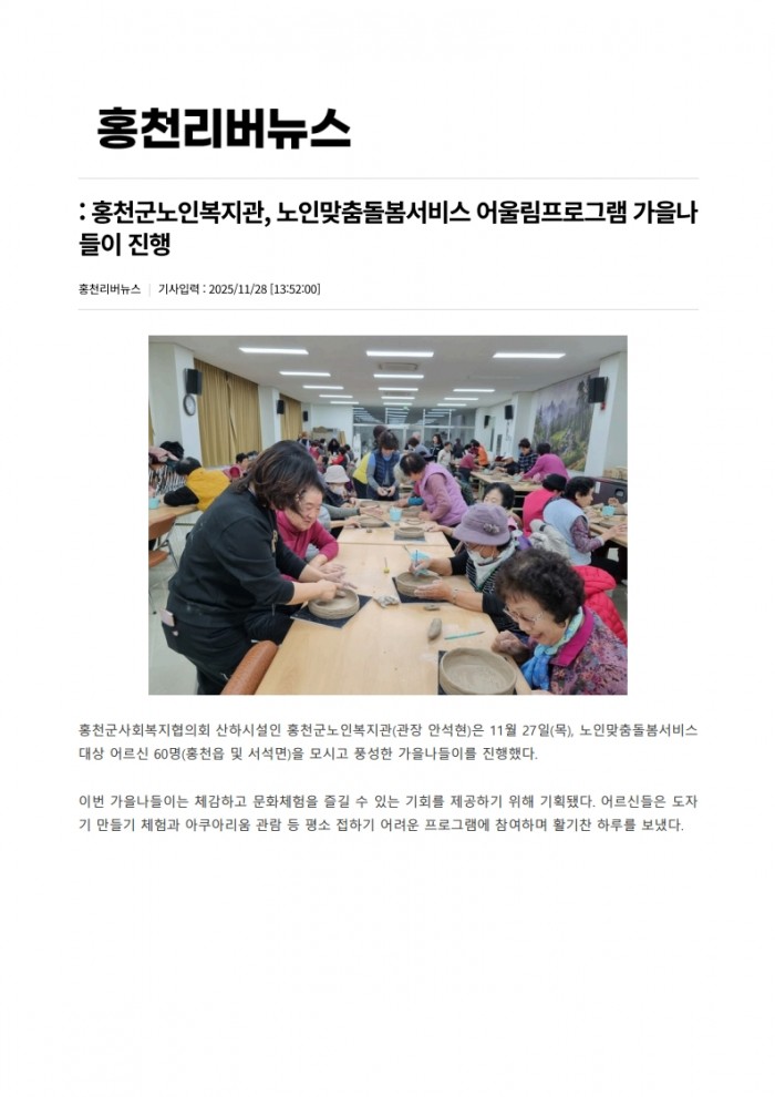 251128_리버뉴스_홍천군노인복지관, 노인맞춤돌봄서비스 어울림프로그램 가을나들이 진행