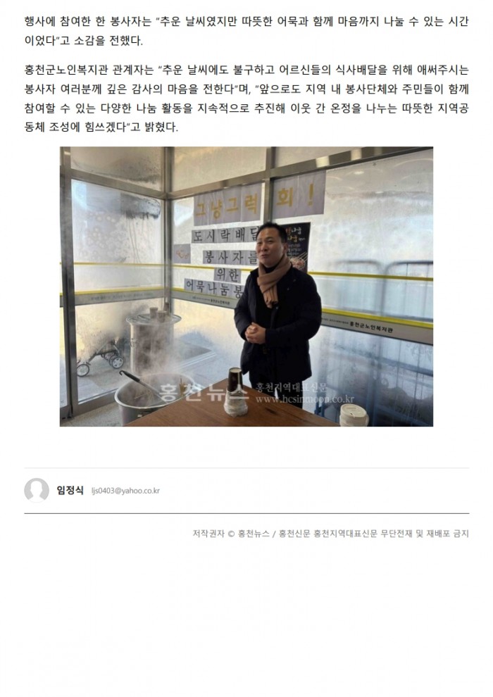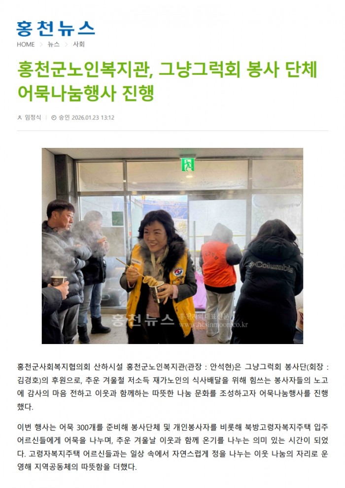 20260123_홍천뉴스_홍천군노인복지관, 그냥그럭회 봉사 단체 어묵나눔행사 진행