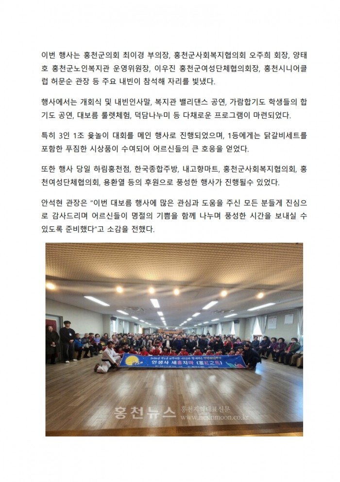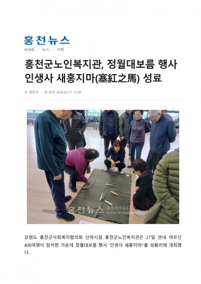 20260227_홍천뉴스_홍천군노인복지관, 정월대보름 행사 인생사 새홍지마(塞紅之馬) 성료