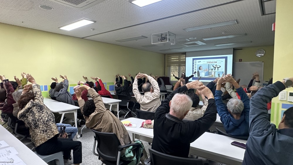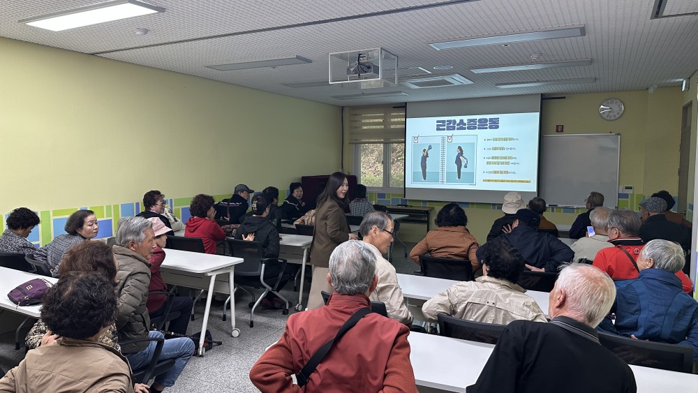 3. 내 용 : 홍천아산병원과 연계하여 "노년을 위한 근감소증 예방"을 주제로 건강강좌를 실시하였습니다.