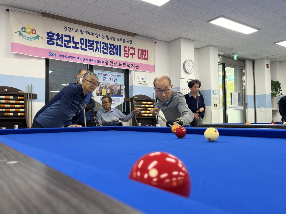 1. 일 시 : 2025.10.20.(월)~ 10. 24.(금)2. 장 소 : 홍천군노인복지관 체육프로그램실(탁구,당구,바둑)3. 내 용 : 홍천군노인복지관(관장 안석현)은 10월 20일부터 24일까지 바둑, 탁구, 당구 등 3종목의 2025년 홍천군노인복지관장배 체육대회를 진행하였습니다. 종목별 참가 자격은 노인복지관 이용회원으로 사전접수를 통해 신청받았으며, 바둑은 개인전, 탁구는 단체전, 당구는 단식과 복식으로 진행하였습니다. 대회기간 내 이용회원과 직원간 친목 도모를 위해 오목, 탁구, 당구 친선경기도 진행해 직원 간 화합의 시간이 되었습니다.4. 담 당 자 : 길병규 팀장5. 연 락 처: 033-430-87886. 보도링크 : https://www.shinailbo.co.kr/news/articleView.html?idxno=2134874