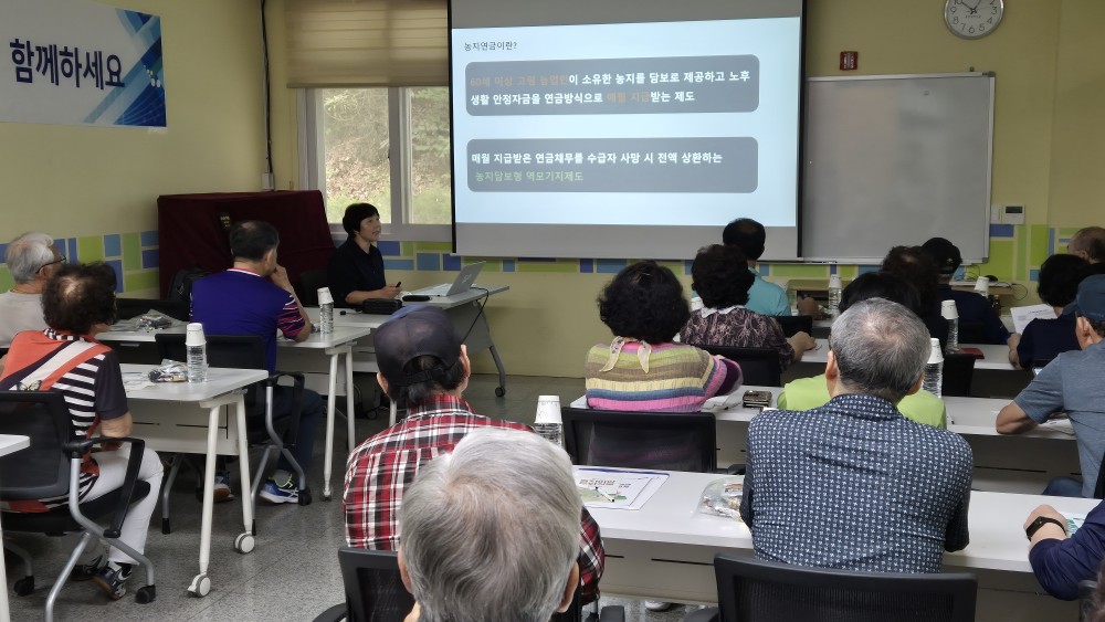 3. 내 용 : 한국농어촌공사 홍천춘천공사와 연계하여 노후설계컨설팅(농지연금 / 은퇴이양보조금 제도) 및 웃음치료 강의를 진행하였습니다.