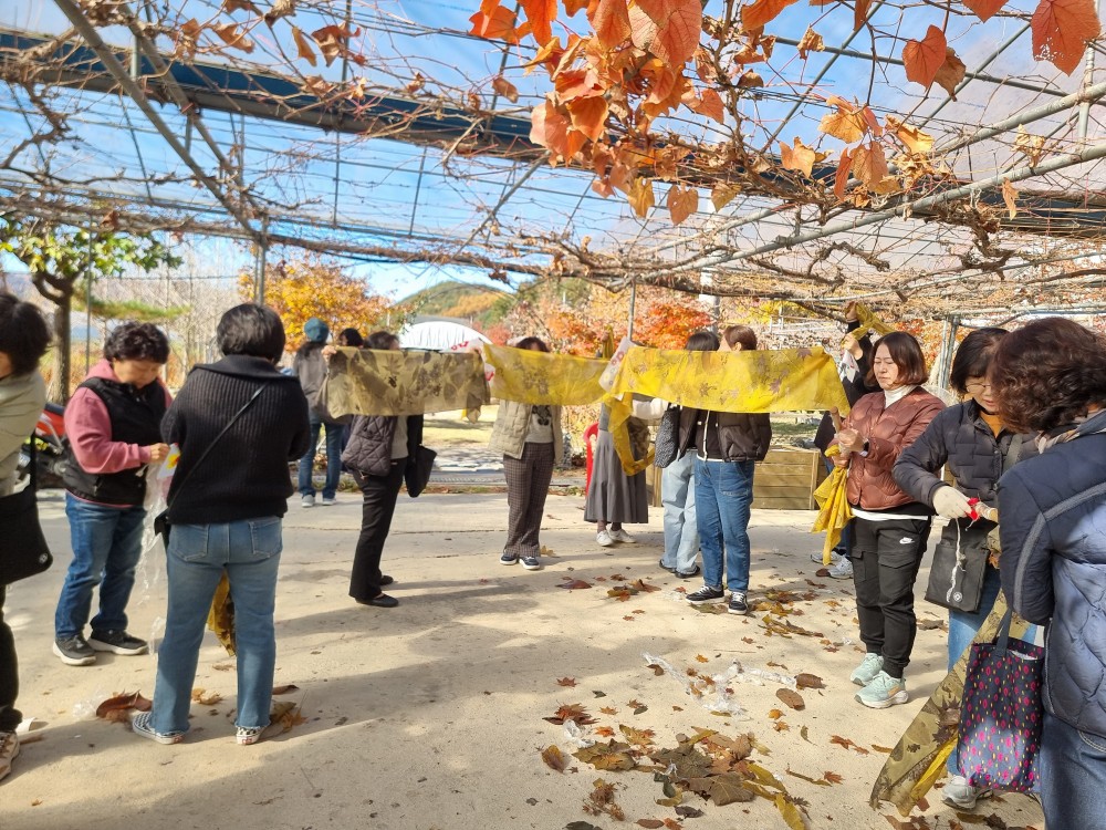 종사자의 지친 마음을 치유하기 위해 가을 낙엽을 활용한 천연염색 ‘에코프린팅’ 진행하여 자연에서 재충전하는 기회가 되었다.
