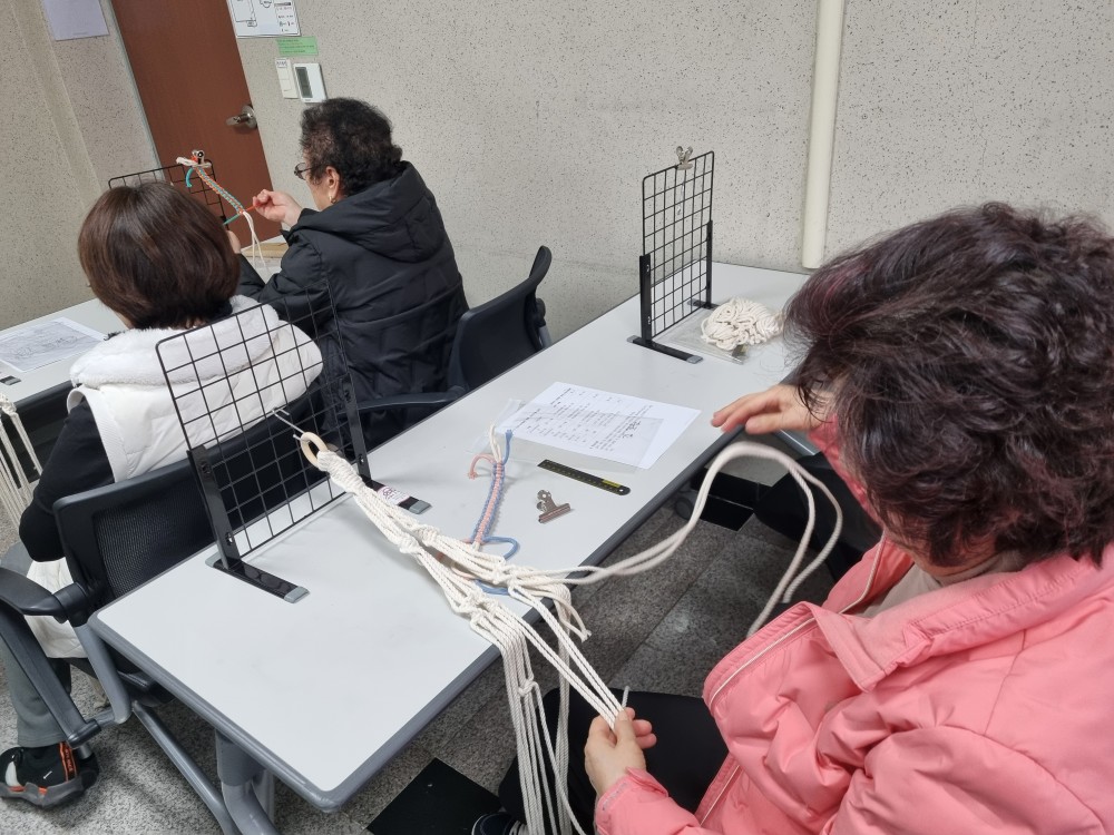 3. 내 용 : 어르신 간 정서적 지지체계 형성을 위한 공예활동 재능나눔 프로그램 '너도나도 함께 락락'의 첫 수업으로 오리엔테이션 및 마크라메공예를 진행하였습니다.