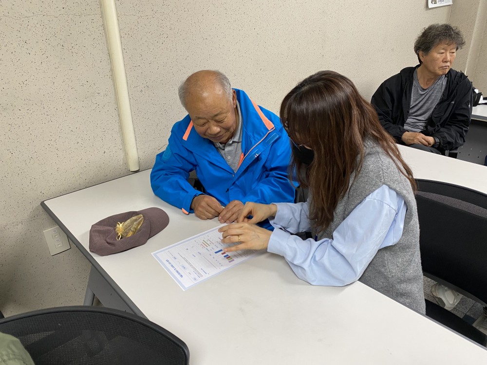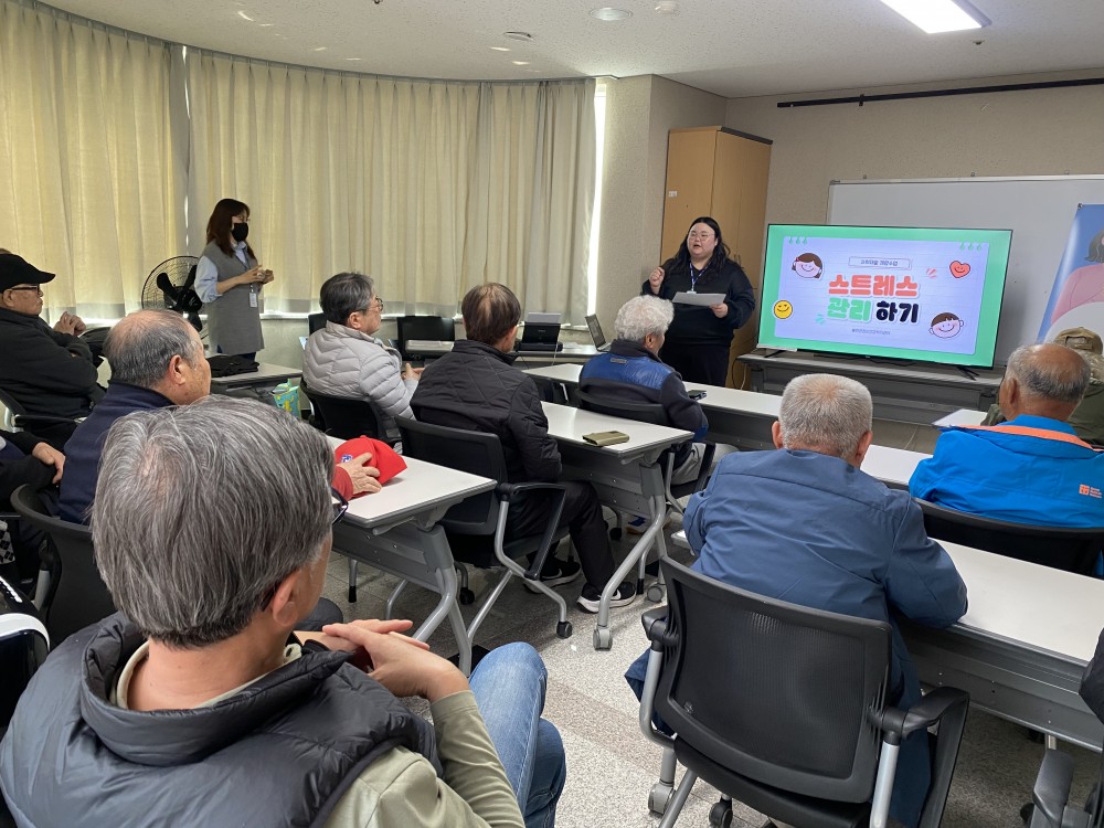 3. 내 용 : 금일 느린살림학교에서는 홍천군정신건강복지센터의 협조를 받아 생활안전교육을 받을 수 있었습니다. 오늘의 내용은 스트레스 교육에 대한 강의를 진행한 후 개인별 스트레스 지수를 검사하는 시간을 가졌습니다. 검사를 진행하는 중간에는 천연 감정 오일을 만들어 보는 시간을 가지기도 하였습니다. 이번 회기가 어르신들의 생활 안정에 도움이 되는 시간이었기를 바랍니다.