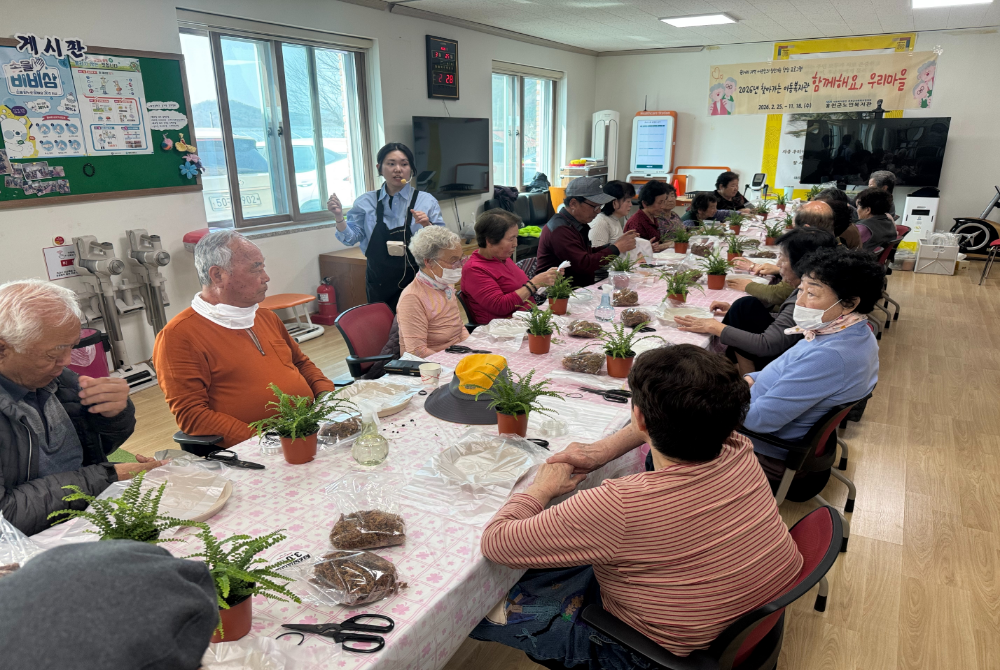 3. 내 용 : 내촌면 서곡리 경로당을 방문하여 기관 홍보영상 시청 및 중식 제공, 원예프로그램(이끼볼 가드닝 만들기), 웃음건강체조를 진행하였습니다.