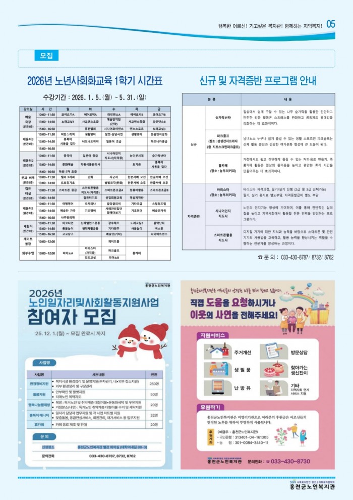 북방면 홍천군노인복지관 사업안내
